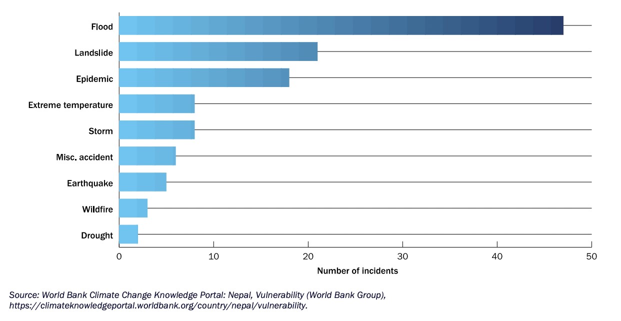 [68] Mattia Amadio et al., Climate risks, exposure, vulnerability and resilience in Nepal (Washington DC: World Bank, 2023), https://reliefweb.int/report/nepal/climate-risks-exposure-vulnerability-and-resilience-nepal#:~:text=While%20landslides%20are%20more%20likely,%2C%20heat%2C%20and%20drought%20hazards (accessed on 20 March 2024).