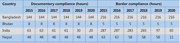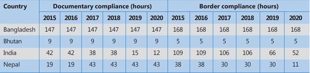 When it comes to trade facilitation, except Bhutan, other BBIN countries have various provisions resulting in high costs and time drags in exports and imports. That is why South Asian countries have not been able to realise their trade potential. Nepal requires the highest level of documentary and border compliance with both India and Bangladesh (see Tables 7 and 8), which affects its external trade.
