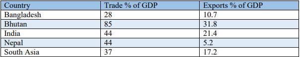 Table-1: India’s Trade with South Asian Countries